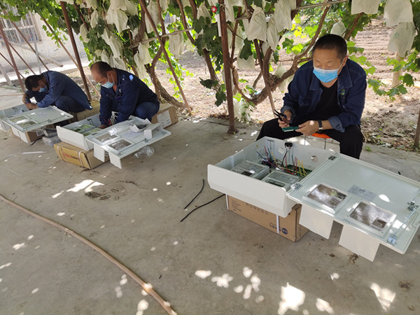 中國(guó)電力網(wǎng)訊 “3根電壓線從左至右顏色為黃、綠 .......”8月14日,這是新疆生產(chǎn)建設(shè)兵團(tuán)第一師電力公司荒地供電所張紹軍師傅正在給徒弟張先斌視頻講解電表接線。