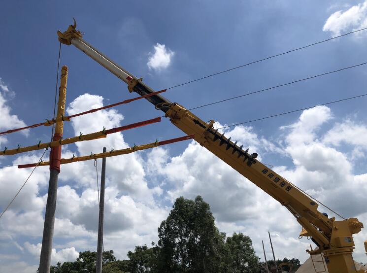 拉開三相導線、用黃色絕緣護具遮蔽電桿桿頂、吊車進駐現(xiàn)場……現(xiàn)場安全監(jiān)護、地面配合人員按照事先制定的作業(yè)方案有序配合。“右邊一點,好!慢慢向上移……”12時 20分,穿上“黃馬褂”的水泥電桿被吊臂車緩緩拉起、立直;確認調(diào)整好后,工作人員迅速開始回填電桿桿坑。經(jīng)過三個半小時的緊張作業(yè),帶電線路的“虎口”間被成功種下了一枚“水泥牙”,該局帶電組立電桿作業(yè)順利結(jié)束。