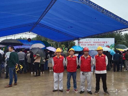 9月24日,新田縣2020年“中國農(nóng)民豐收節(jié)”暨首屆“新田蔬菜節(jié)”慶?;顒釉邶埲?zhèn)東升村正式拉開序幕,國網(wǎng)新田縣供電公司共產(chǎn)黨員服務(wù)隊堅守活動現(xiàn)場,全程值守,確保供電萬無一失。