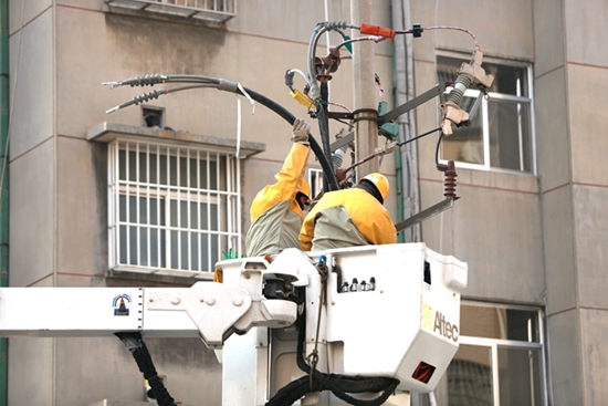 中國電力網(wǎng)訊 1月6日,濰坊市壽光地區(qū)氣溫出現(xiàn)“斷崖式”下跌,氣溫降至零下17攝氏度。在壽光市圣城街道某小區(qū),國網(wǎng)壽光市供電公司帶電作業(yè)人員冒著嚴寒對10千伏城一線115號臺區(qū)帶電更換電纜,進一步提升線路安全供電能力,為小區(qū)居民冬季電采暖用電提供堅強保障。