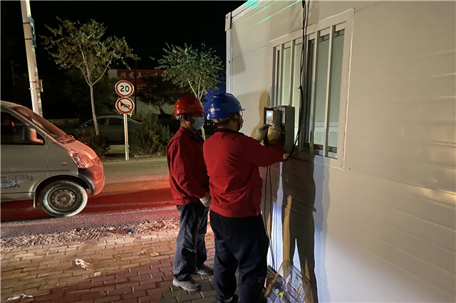 疫情就是命令,防控就是責(zé)任,當(dāng)天下午16時(shí)許,在接到巴音陶亥鎮(zhèn)為疫情防控站點(diǎn)接電申請(qǐng)后,六五四供電分局黨政領(lǐng)導(dǎo)高度重視,要求特事特辦,不講條件,攻堅(jiān)克難,火速送電。分局迅速組織各班組共20余名工作人員,分四組趕赴各個(gè)疫情防控檢測(cè)站點(diǎn),現(xiàn)場(chǎng)勘察設(shè)計(jì),安裝臨時(shí)表箱、表計(jì)、保護(hù)裝置,鋪設(shè)臨時(shí)線路。