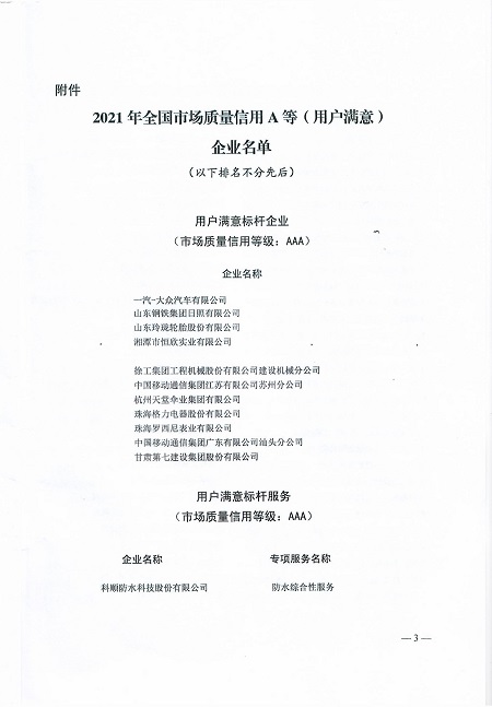 中國(guó)電力網(wǎng)訊 2021年11月18日,中國(guó)質(zhì)量協(xié)會(huì)發(fā)布了關(guān)于2021年全國(guó)市場(chǎng)質(zhì)量信用A等(用戶(hù)滿(mǎn)意)企業(yè)名單的通知(中國(guó)質(zhì)協(xié)字【2021】210號(hào)文)。經(jīng)過(guò)自愿申請(qǐng)、資料初審、第三方信用評(píng)價(jià)機(jī)構(gòu)評(píng)價(jià)和專(zhuān)家評(píng)審,國(guó)網(wǎng)湖南省東安縣供電分公司被評(píng)為用戶(hù)滿(mǎn)意企業(yè),市場(chǎng)質(zhì)量信用等級(jí)AA。