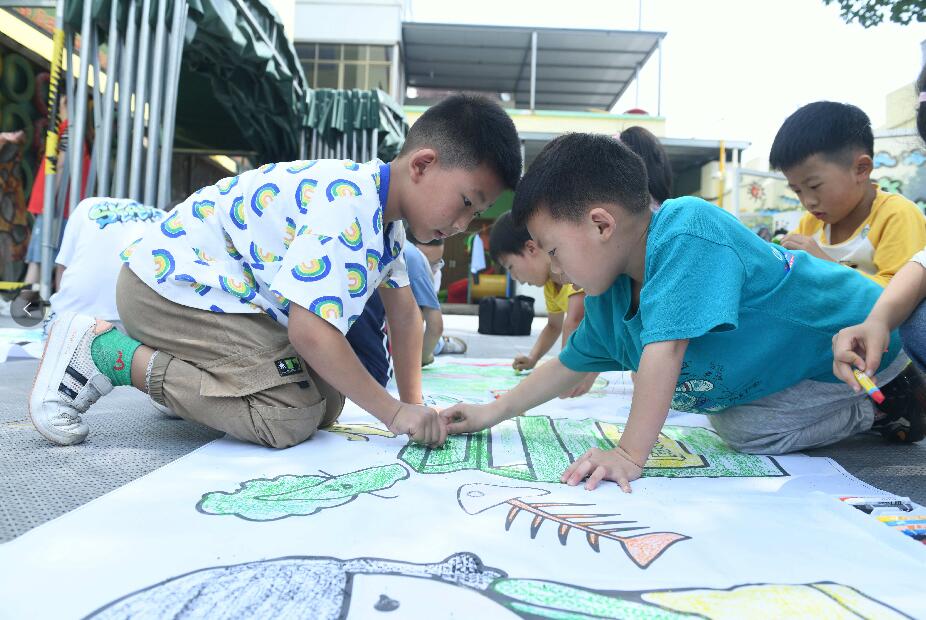 在活動(dòng)中,志愿者們還鼓勵(lì)孩子爭(zhēng)做傳播環(huán)保節(jié)能的小小宣傳員,通過親手制作的宣傳畫,把今天學(xué)到的知識(shí)分享給爸爸媽媽以及其他小伙伴。不遠(yuǎn)處,小宣傳員們手拿蠟筆,在長(zhǎng)畫布上描繪“節(jié)能低碳”,有節(jié)約用電、垃圾分類、節(jié)約用水等不同類別,孩子們紛紛畫出獨(dú)屬于自己的宣傳畫。