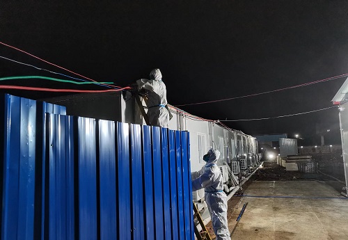 疫情就是命令,防控就是責(zé)任。國網(wǎng)東安縣供電公司黨委積極部署制定方案,以楊成為首的4名工作人員進入防控區(qū)域進行作業(yè),著全套防護服、攜帶登桿、搶修各類工具及材料進入管控區(qū)域。隨后,工作人員開始對院內(nèi)的變壓器以及用電線路等設(shè)備進行全面檢查,為盡快恢復(fù)隔離點供電,從排查電氣、監(jiān)測漏電保護器、更換導(dǎo)線,大家爭分奪秒。“夜間作業(yè)視線不好,要特別注意安全,要戴好口罩,注意自身的防護!”楊成叮囑每一位搶修人員,在應(yīng)急搶修燈的照明下,工作人員不敢有絲毫的麻痹大意,嚴密監(jiān)護作業(yè)……一道道工序有條不紊地進行著,雖然天氣變冷,但是密不透風(fēng)的防護服和口罩很快便被汗水打濕,他們在夜幕中來回穿梭,與時間賽跑,與疫情競速,用時6小時,奮戰(zhàn)到晚上23點圓滿完成緊急供電任務(wù)。