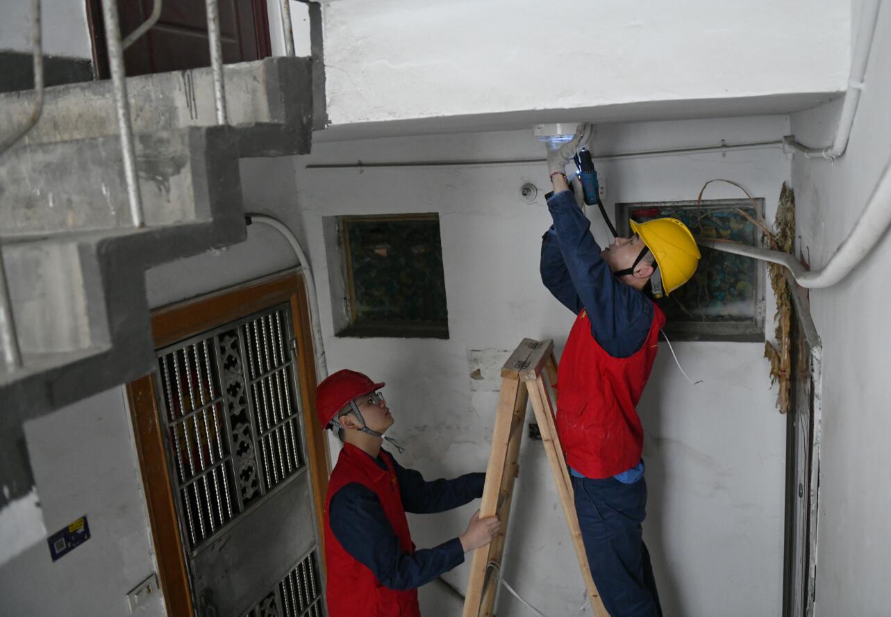 “盡量不要影響居民,包裝盒、廢線等也不要亂扔。”隊(duì)員們相互提醒,在不影響居民休息的前提下?lián)屵M(jìn)度,終于在下午15時(shí)30分完成了所有改造任務(wù),讓每個(gè)樓道都煥然一新、明亮如初。