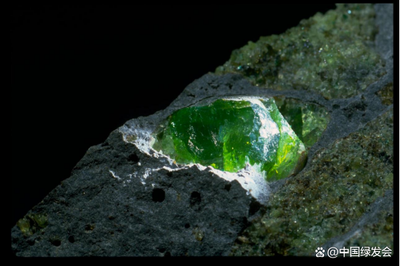 (鎂橄欖石,一種橄欖石礦物。地下水與橄欖石相互作用會(huì)導(dǎo)致氫氣在周?chē)鷰r層中積聚。圖片來(lái)源:史密森尼國(guó)家自然歷史博物館。)