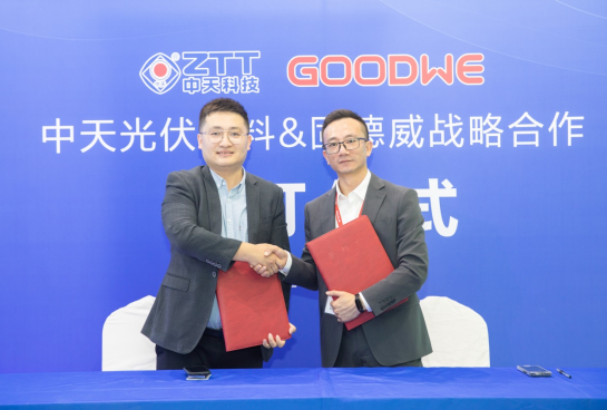 展會(huì)現(xiàn)場(chǎng),中天科技與固德威電源科技簽訂戰(zhàn)略合作協(xié)議,在新能源業(yè)務(wù)系統(tǒng)解決方案、資源開(kāi)發(fā)等方面進(jìn)一步深化合作,實(shí)現(xiàn)優(yōu)勢(shì)互補(bǔ)、共贏發(fā)展。