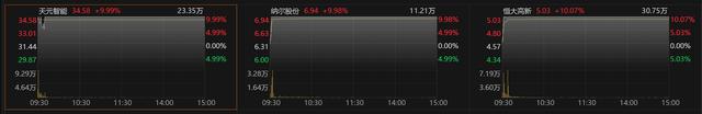 多重利好驅(qū)動(dòng)氫能板塊拉升,擁有水制氫設(shè)備的天元智能收盤錄得6連板,擬與新視揚(yáng)共同設(shè)立江西恒大綠能科技有限公司主要開(kāi)展氫能源等新能源材料業(yè)務(wù)的恒大高新、子公司旗下具有氫能源領(lǐng)域核心零部件等項(xiàng)目的納爾股份雙雙漲停。