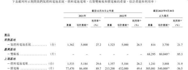 重塑能源也“預(yù)留”了充足的產(chǎn)能,報(bào)告期內(nèi),其氫燃料電池系統(tǒng)產(chǎn)能利用率分別為27.2%、26.5%及21.7%,燃料電池電堆產(chǎn)能利用率分別為29.6%、26.2%及31.9%,其余產(chǎn)品各期產(chǎn)能利用率均未超過90%。