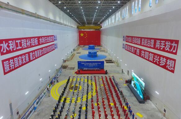 大藤峽水利樞紐工程是國務院確定的172項節(jié)水供水重大水利工程的標志性工程,集防洪、航運、發(fā)電、水資源配置、灌溉等綜合效益于一體,是珠江流域關鍵控制性水利樞紐,被喻為珠江上的“三峽工程”。電站總裝機容量160萬千瓦,共安裝8臺單機容量20萬千瓦的水輪發(fā)電機組,左岸廠房3臺,右岸廠房5臺,為國內最大的軸流轉漿式水輪發(fā)電機組。
