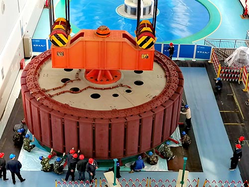 當(dāng)日12時(shí),董箐電站1號(hào)發(fā)電機(jī)轉(zhuǎn)子從機(jī)坑緩緩吊起,在地面指揮和現(xiàn)場(chǎng)工作人員的密切配合下,轉(zhuǎn)子平穩(wěn)地吊離機(jī)坑,按指定的路線移送至檢修平臺(tái)的支墩上固定就位,整個(gè)起吊過(guò)程用時(shí)50分鐘。