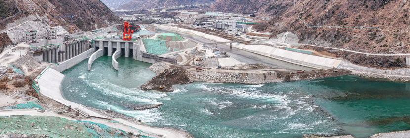 初春的四川甘孜,乍暖還寒。從瀘定縣城出發(fā),沿大渡河溯流而下,車行大約20公里,一處尚在施工的攔河大壩出現(xiàn)在巍峨群山之間。五孔泄洪閘壩形態(tài)初現(xiàn),面板堆石壩上車來車往填筑正忙,生態(tài)流量泄放閘里機器轟鳴,生態(tài)廠房封頂在即。