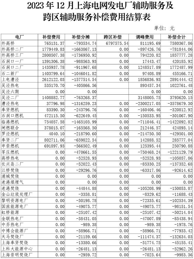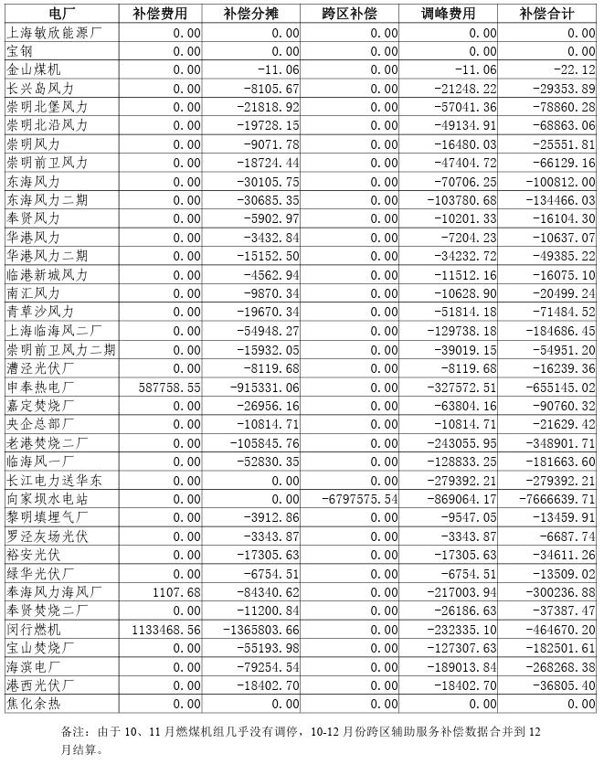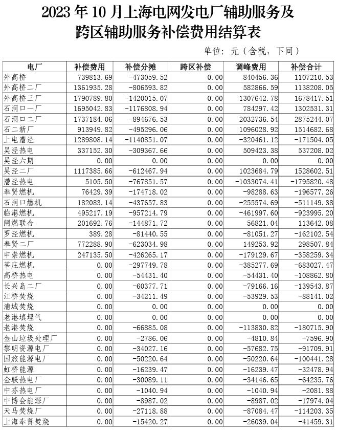 附件:2023年10-12月上海電網(wǎng)發(fā)電廠輔助服務及跨區(qū)輔助服務補償費用結(jié)算表