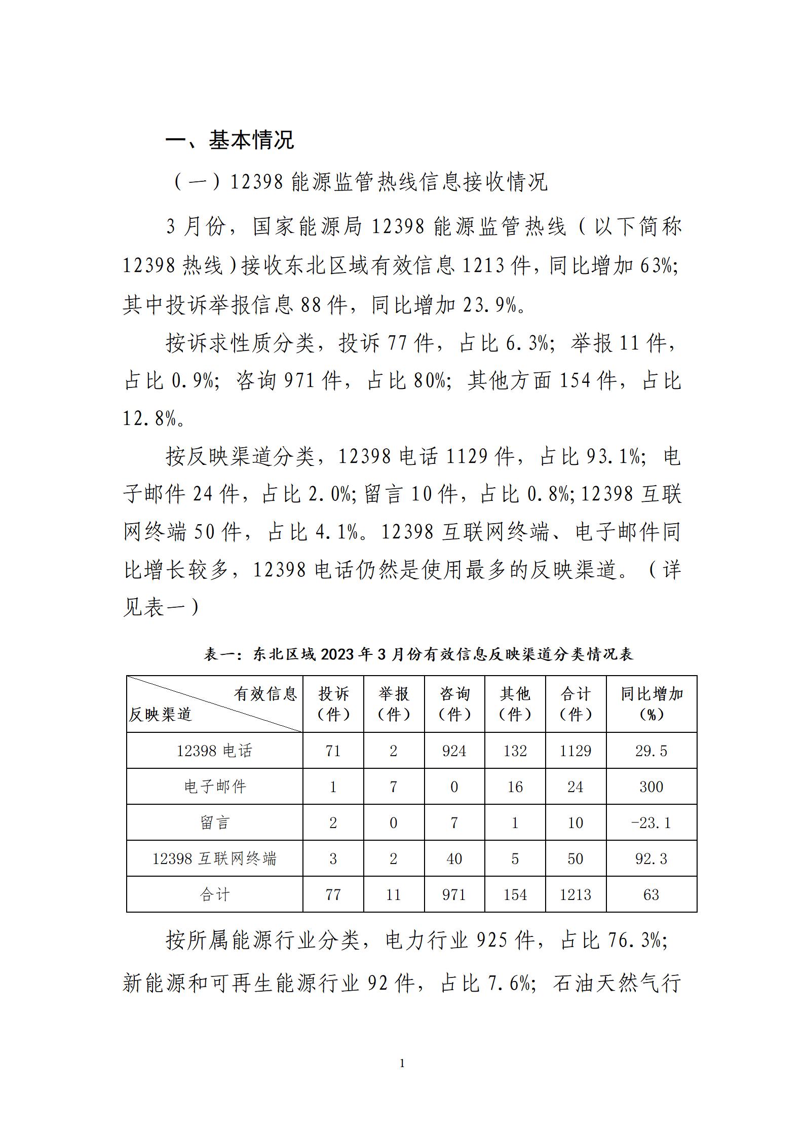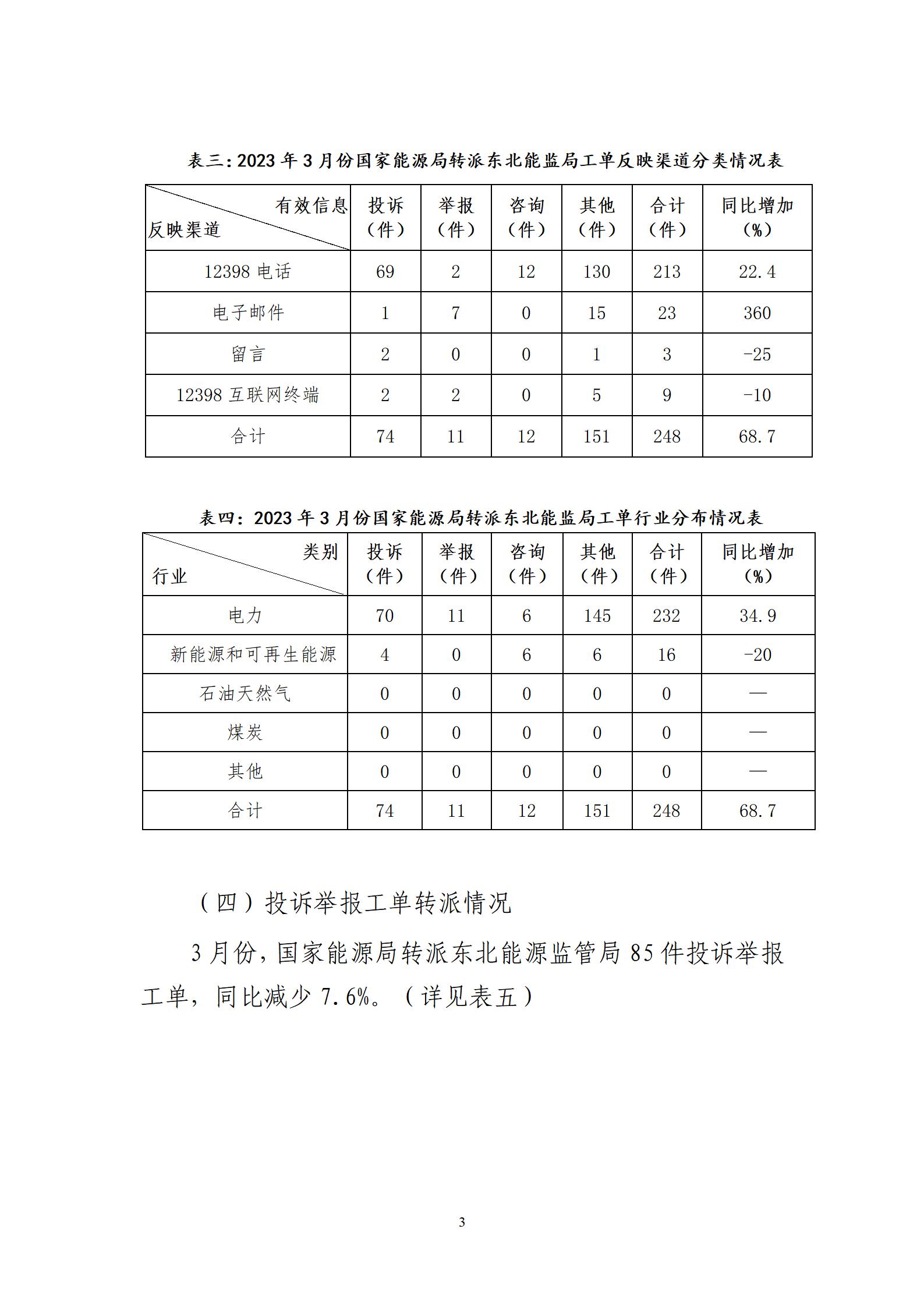 2023年3月份東北區(qū)域能源監(jiān)管投訴舉報(bào)辦理情況