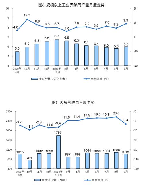 1—9月份,生產(chǎn)天然氣1704億立方米,同比增長(zhǎng)6.4%。進(jìn)口天然氣8777萬(wàn)噸,同比增長(zhǎng)8.2%。