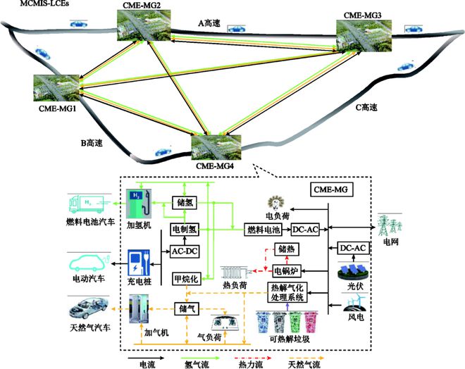 新能源汽車產業(yè)的快速發(fā)展是實現(xiàn)“碳達峰,碳中和”行動的重要組成部分。隨著新能源汽車逐步規(guī)?;l(fā)展,我國電能、氫氣、天然氣驅動汽車保有量預計在2035年突破1.5億輛。面對不斷增長的多能源充能需求和碳減排壓力,提出含電、氫和天然氣等多種能源生產、傳輸、轉換、存儲、消費各環(huán)節(jié)深度耦合,并具有一定垃圾處理能力的充能型微網是解決新能源汽車充能這一涵蓋環(huán)境、交通、能源等多領域協(xié)同問題的有效途徑之一。