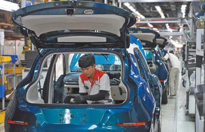 今年1月,中國車企長城汽車旗下電動汽車歐拉好貓?jiān)谔﹪_勇新能源汽車制造基地正式下線,成為泰國首款本土量產(chǎn)的純電車型,將加速泰國汽車行業(yè)電氣化轉(zhuǎn)型。圖為該制造基地的生產(chǎn)車間內(nèi),工人在進(jìn)行汽車裝配作業(yè)。本報記者 白元琪攝