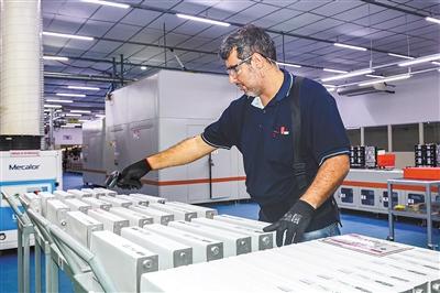 位于巴西亞馬孫州首府馬瑙斯的比亞迪電池工廠主要生產(chǎn)磷酸鐵鋰電池模組,為巴西的電動大巴提供可靠的新能源動力,推動了當(dāng)?shù)乜沙掷m(xù)能源產(chǎn)業(yè)的發(fā)展,為減少碳排放和環(huán)境保護(hù)作出了貢獻(xiàn)。圖為當(dāng)?shù)貑T工正在掃描電芯條碼。里卡多·梅內(nèi)塞斯攝