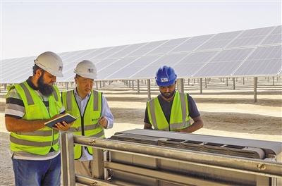 由中國企業(yè)總承包的阿聯(lián)酋艾爾達(dá)芙拉光伏電站可供20萬戶居民用電,每年減少二氧化碳排放240萬噸,使清潔能源在阿聯(lián)酋總能源結(jié)構(gòu)中的比重提高到13%以上。圖為中外員工在艾爾達(dá)芙拉光伏電站工作。本報中東中心分社 納達(dá)爾·達(dá)烏德攝