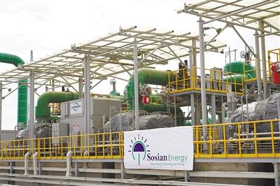 由中國企業(yè)承建的肯尼亞索西安地?zé)犭娬居谌ツ?月底投產(chǎn)送電,成為非洲首個從設(shè)計(jì)、產(chǎn)品生產(chǎn)到建設(shè)、調(diào)試完全由中國企業(yè)獨(dú)立完成的地?zé)岚l(fā)電站。該電站設(shè)計(jì)裝機(jī)容量35兆瓦,每年可減少二氧化碳排放24萬噸。圖為索西安地?zé)犭娬?號發(fā)電機(jī)組。本報記者 黃煒鑫攝