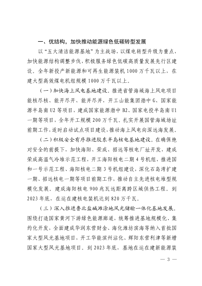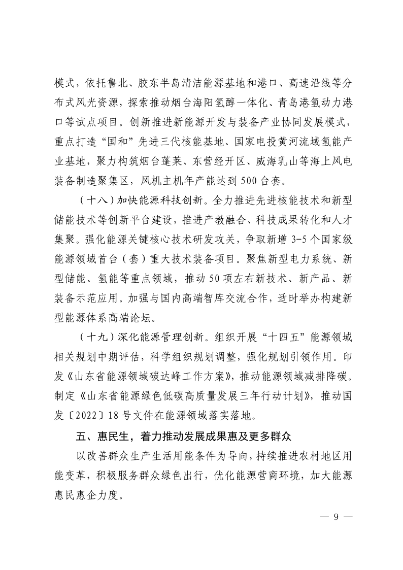 2月7日,山東省能源局印發(fā)2023年全省能源工作指導(dǎo)意見,其中氫能方面指出:創(chuàng)新打造風(fēng)光氫儲一體化發(fā)展模式,依托魯北、膠東半島清潔能源基地和港口、高速沿線等分布式風(fēng)光資源,探索推動煙臺海陽氫醇一體化、青島港氫動力港口等試點項目。創(chuàng)新推進(jìn)新能源開發(fā)與裝備產(chǎn)業(yè)協(xié)同發(fā)展模式, 重點打造“國和”先進(jìn)三代核能基地、國家電投黃河流域氫能產(chǎn)業(yè)基地,聚力構(gòu)筑煙臺蓬萊、東營經(jīng)開區(qū)、威海乳山等海上風(fēng)電 裝備制造聚集區(qū),風(fēng)機(jī)主機(jī)年產(chǎn)能達(dá)到500臺套。