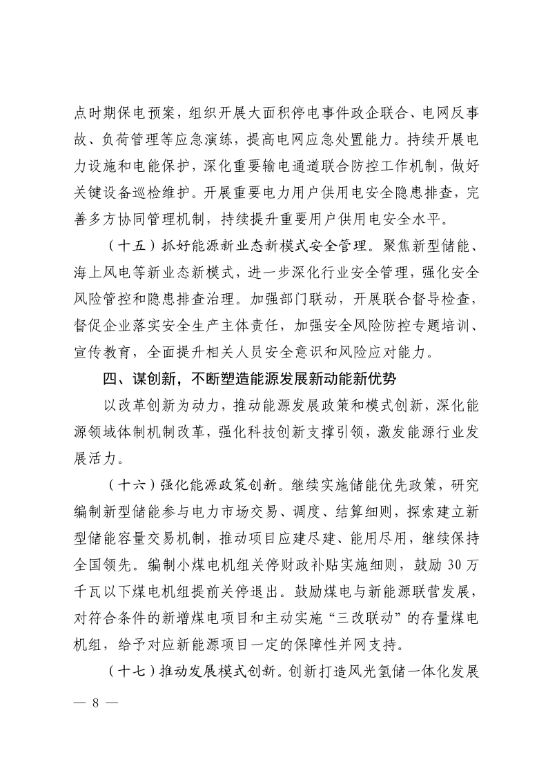 聚焦新型電力系統(tǒng)、新型儲能、氫能等重點領(lǐng)域,推動50項左右新技術(shù)、新產(chǎn)品、新裝備示范應(yīng)用。