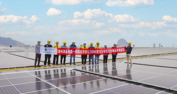 近日,記者來(lái)到柳江區(qū)新興工業(yè)園的柳州津晶電器有限公司光伏項(xiàng)目現(xiàn)場(chǎng),跟隨無(wú)人機(jī)的航拍畫面,瀏覽到了坐落在公司廠房上的光伏電站壯觀場(chǎng)景——一塊塊排列整齊的藍(lán)色太陽(yáng)能光伏發(fā)電板格外耀眼,各個(gè)基站點(diǎn)有序“靜音”運(yùn)行。項(xiàng)目投資方“廣西柳州新瑞銘秦光伏科技有限公司”負(fù)責(zé)人宣布柳州津晶一期1號(hào)6.5MW分布式光伏項(xiàng)目并網(wǎng)發(fā)電成功!這是目前廣西單體最大的分布式光伏電站。成功并網(wǎng),將助力園區(qū)企業(yè)綠色環(huán)保低碳轉(zhuǎn)型發(fā)展。
