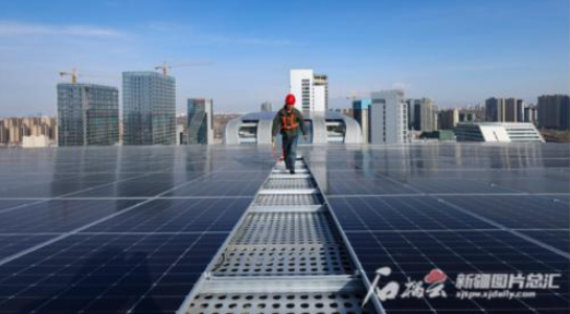 3月16日,工作人員在屋頂巡檢光伏發(fā)電設(shè)備