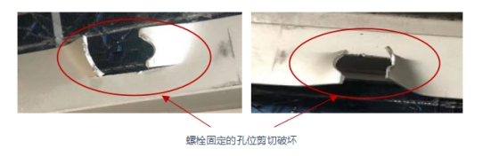 當遭受大風等外界壓力時,組件的破壞都是從最薄弱點開始的,即連接處的C面。這在兩家主流廠家的風洞測試中,得到了同樣的驗證結(jié)果:組件失效均為螺栓固定的孔位剪切破壞。因此,提高最薄弱點的承載力,是提高組件抗載荷能力最有效和最經(jīng)濟的方式。