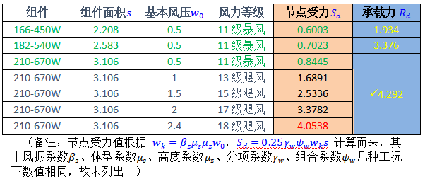 假設(shè)風力等級繼續(xù)提高、風壓加大,可從下表看到,670W至尊組件最大承載力4.292kN,足以承受堪比18級大風的節(jié)點受力。這與風洞實驗室環(huán)境下,至尊670W組件通過17級超強大風的極限風速考驗得結(jié)果基本一致,其機械可靠性得到實驗室與項目應(yīng)用兩種環(huán)境下的雙重驗證!