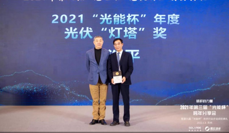 1月6日,備受矚目的2021年“光能杯”評選活動在蘇州盛大開啟,中環(huán)股份副董事長兼總經理沈浩平先生被授予2021年度“光能杯”光伏“燈塔獎”,國家應對氣候變化戰(zhàn)略研究和國際合作中心首任主任李俊峰先生為其現(xiàn)場頒獎。