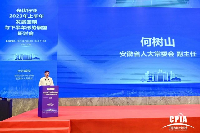 2023年7月20日,由中國光伏行業(yè)協(xié)會(huì)、宣城市人民政府主辦的“光伏行業(yè)2023年上半年發(fā)展回顧與下半年形勢(shì)展望研討會(huì)”在安徽省宣城市成功舉辦。安徽省人大常委會(huì)副主任何樹山出席會(huì)議并致辭。
