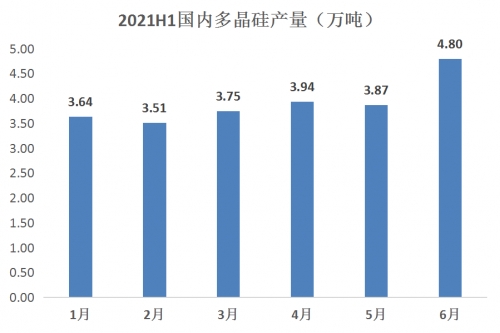 從硅業(yè)分會2021年上半年預(yù)計(jì)的硅片產(chǎn)量來看,硅料需求量合計(jì)約29.8萬噸,而國內(nèi)供給量約為28.1萬噸,供給與需求大致處于緊平衡狀態(tài)。硅片產(chǎn)能的超前超量釋放導(dǎo)致硅料總體需求激增,硅料企業(yè)上半年基本都是滿產(chǎn)運(yùn)營狀態(tài),部分硅料企業(yè)個別月份綜合開工率更是高達(dá)111%。