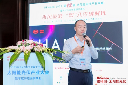 蘇州騰暉光伏技術(shù)有限公司研發(fā)總監(jiān)錢洪強(qiáng)先生,就基于異質(zhì)結(jié)電池方面的問(wèn)題,發(fā)表了主題為《雙碳目標(biāo)下光伏技術(shù)發(fā)展的趨勢(shì)討論》的精彩演講。