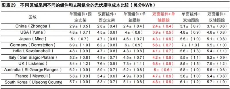 采用跟蹤支架雖然會增加初始投資和運維成本,但由于具有明顯的發(fā)電增益,能夠實現更低的度電成本。據彭博新能源的統(tǒng)計,2021上半年,采用跟蹤支架系統(tǒng)的光伏電站項目的全球平均度電成本約38美元/MWh,明顯低于固定支架光伏項目。