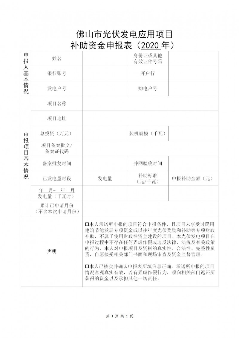 根據(jù)《佛山市人民政府辦公室關(guān)于對(duì)2016—2018年建成光伏發(fā)電應(yīng)用項(xiàng)目進(jìn)行獎(jiǎng)勵(lì)和補(bǔ)助的通知》(佛府辦〔2016〕57號(hào),見附件1)、《佛山市發(fā)展和改革局佛山市財(cái)政局關(guān)于修訂佛山市分布式光伏發(fā)電項(xiàng)目補(bǔ)助資金管理辦法(2019—2020年)的通知》(佛發(fā)改新能〔2020〕7號(hào),見附件2)的文件要求,現(xiàn)開展我區(qū)2020年度光伏補(bǔ)助資金申報(bào)工作,并將有關(guān)事項(xiàng)通知如下: