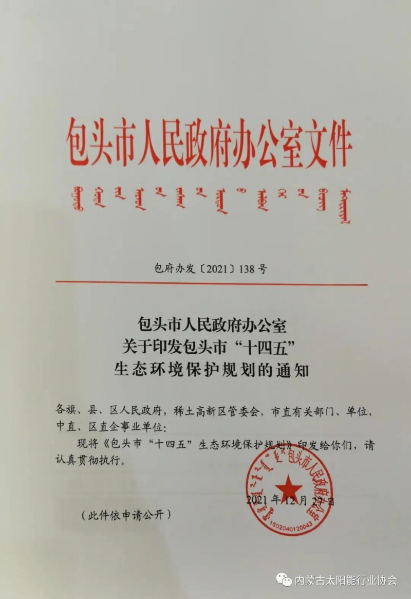 近日,包頭市人民政府下發(fā)《包頭市“十四五”生態(tài)環(huán)境保護(hù)規(guī)劃》。根據(jù)規(guī)劃內(nèi)容,“十四五”期間,包頭市著力構(gòu)建綠色低碳能源供給體系,推動新能源發(fā)展,重點推進(jìn)風(fēng)能、光伏、氫能產(chǎn)業(yè)發(fā)展,探索核能綜合利用,積極促進(jìn)儲能與新能源融合發(fā)展。以集中式和分布式并舉加大風(fēng)電、光伏等開發(fā)建設(shè)力度,延伸新能源鏈條,以風(fēng)能、光能、氫能、核能、儲能為龍頭,謀劃氫能發(fā)展路徑,開展氫能關(guān)鍵技術(shù)攻關(guān),拓展氫源渠道,推進(jìn)加氫基礎(chǔ)設(shè)施建設(shè),推廣氫能多領(lǐng)域利用,促進(jìn)氫能產(chǎn)業(yè)集群發(fā)展,打造新能源裝備制造和相關(guān)技術(shù)服務(wù)產(chǎn)業(yè)集群。以達(dá)茂旗創(chuàng)建全市可再生能源綜合應(yīng)用示范區(qū)為基礎(chǔ),全面推動“國家級清潔能源示范基地建設(shè)”,重點在達(dá)茂、固陽、白云以及土右、石拐的采煤沉陷區(qū)、露天礦坑、排土場、鹽堿地等,建設(shè)一批“源網(wǎng)荷儲一體化”、“風(fēng)光儲一體化”項目,到2025年通過優(yōu)化能源生產(chǎn)結(jié)果、加強能源領(lǐng)域新型產(chǎn)業(yè)布局,將包頭市打造成較為完善的現(xiàn)代能源經(jīng)濟(jì)產(chǎn)業(yè)基地,力爭實現(xiàn)風(fēng)、光等新能源裝機容量達(dá)到1300萬千瓦以上。