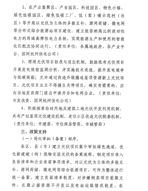 文件提到:除使用財(cái)政資金或以財(cái)政資金為主的光伏項(xiàng)目外,在2021-2025年期間并網(wǎng)的光伏項(xiàng)目(以2021年1月1日為起點(diǎn)計(jì)),待其發(fā)電滿12個(gè)月后,按0.2元/瓦標(biāo)準(zhǔn)給予一次性建設(shè)補(bǔ)貼。主城區(qū)(上城、拱墅、西湖、濱江)的光伏補(bǔ)貼資金由市級(jí)財(cái)政負(fù)責(zé)落實(shí);其他地區(qū)由屬地財(cái)政及市級(jí)財(cái)政按70%、30%承擔(dān)。(牽頭單位:市財(cái)政局、各屬地政府)