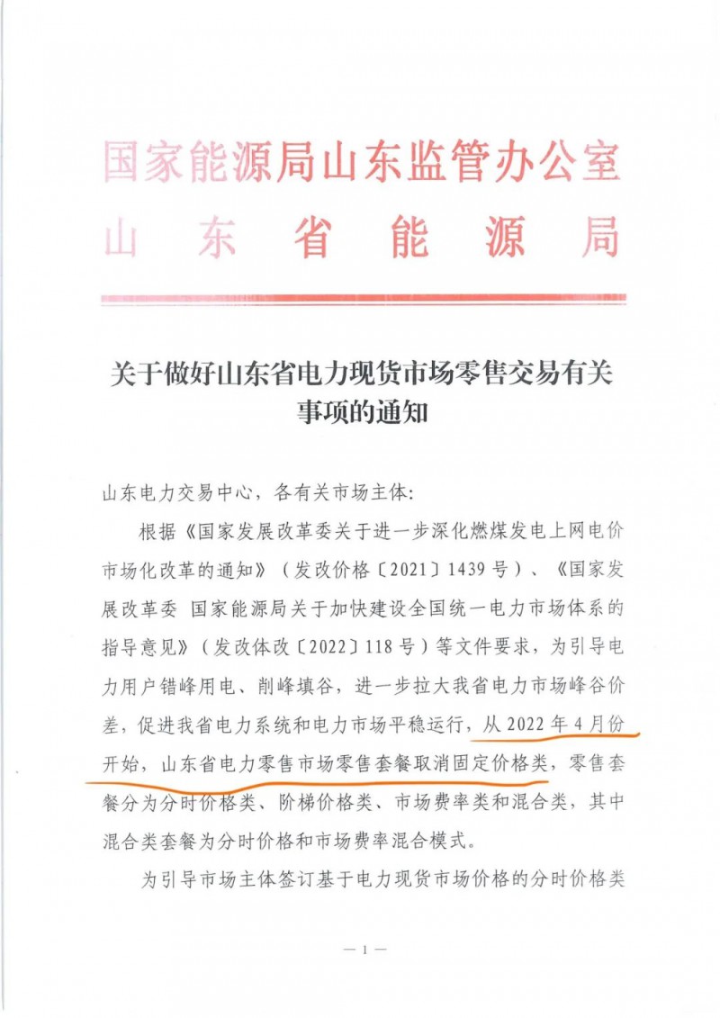 在此次交易公告發(fā)布之前,本月另一份文件的印發(fā)也相當(dāng)重要:3月7日,山東政府發(fā)布《關(guān)于做好山東省電力現(xiàn)貨市場(chǎng)零售交易有關(guān)事項(xiàng)的通知》,宣布從4月起,山東零售市場(chǎng)取消固定費(fèi)率套餐,引導(dǎo)市場(chǎng)主體簽訂基于山東現(xiàn)貨市場(chǎng)價(jià)格的分時(shí)價(jià)格類套餐。(下圖)