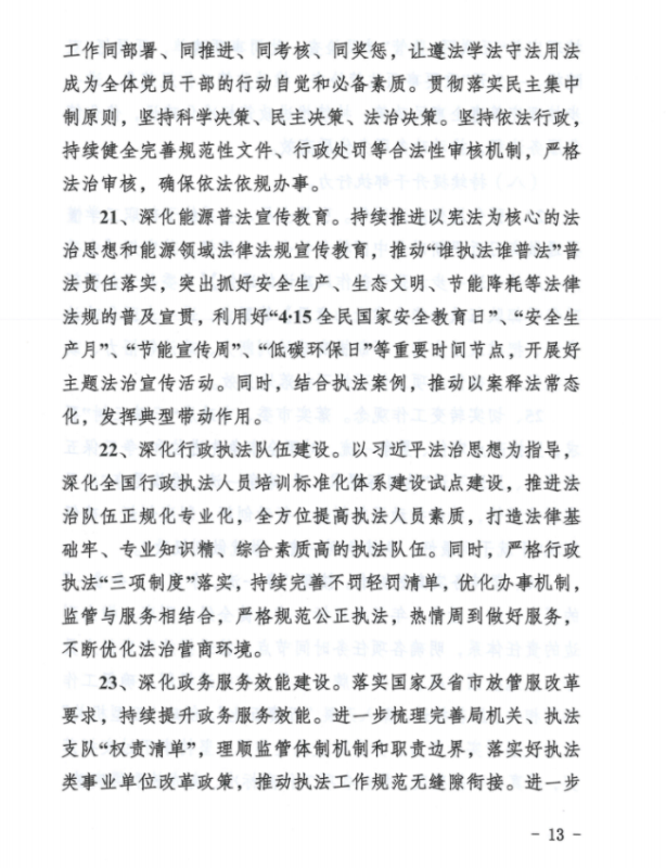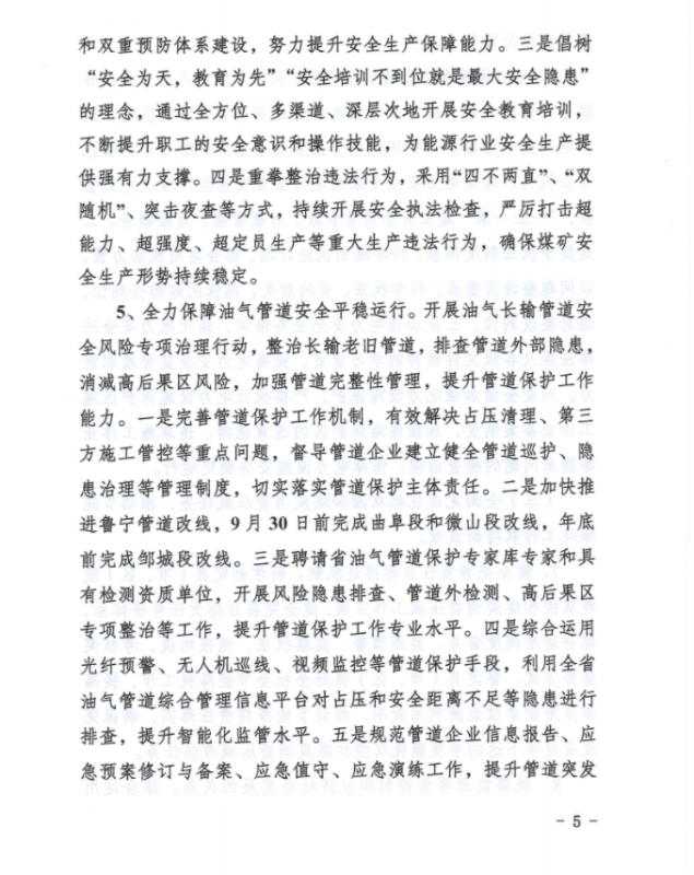 1、能源安全方面:全面落實安全監(jiān)管和設(shè)施保護職責,理順監(jiān)管體制機制,以安全責任落實為抓手,全力保障煤礦安全生產(chǎn)和電力、油氣管道設(shè)施安全運行,確保能源領(lǐng)域安全生產(chǎn)形勢持續(xù)穩(wěn)定向好。