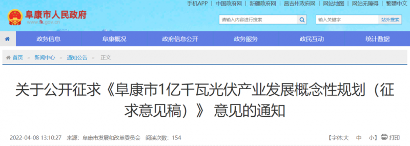 為強(qiáng)化社會(huì)監(jiān)督,方便公眾為我市光伏產(chǎn)業(yè)發(fā)展建言獻(xiàn)策,我單位結(jié)合實(shí)際,在廣泛調(diào)研和多次征求意見的基礎(chǔ)上,起草了《阜康市1億千瓦光伏產(chǎn)業(yè)發(fā)展概念性規(guī)劃(征求意見稿)》,現(xiàn)公開征求意見。