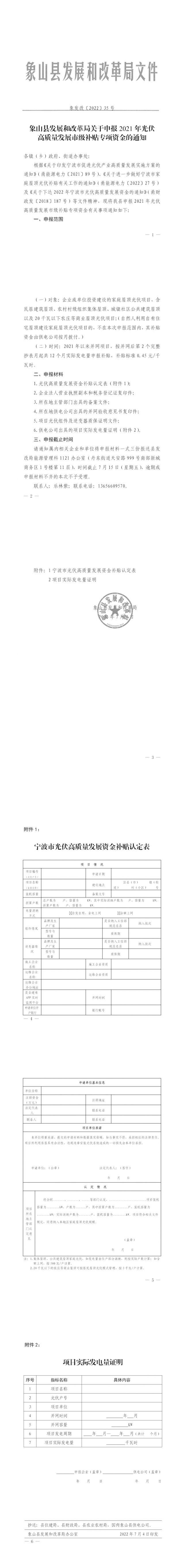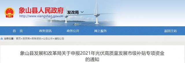 7月5日,浙江象山縣發(fā)展和改革局關(guān)于申報2021年光伏高質(zhì)量發(fā)展市級補(bǔ)貼專項資金的通知發(fā)布。