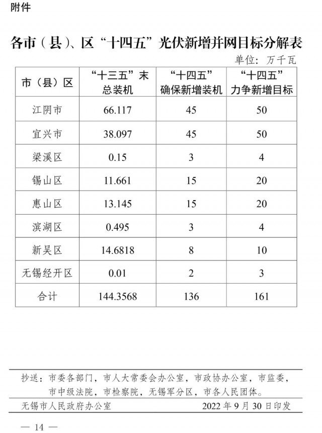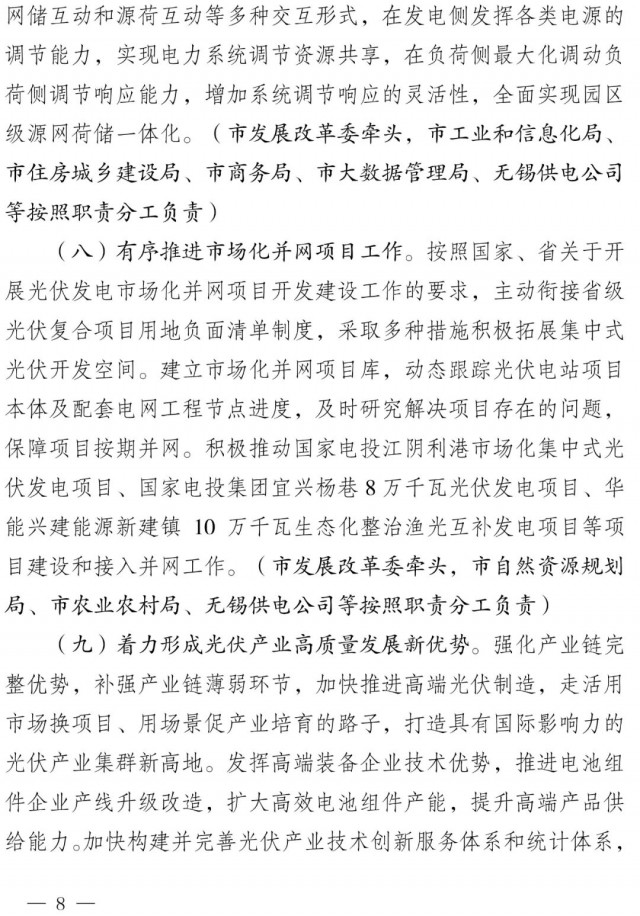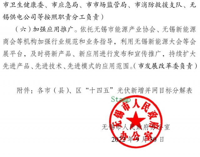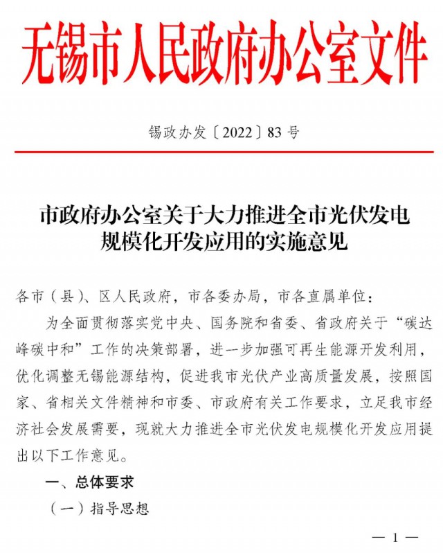 近日,江蘇省無錫市人民政府印發(fā)《關(guān)于大力推進(jìn)全市光伏發(fā)電規(guī)?;_發(fā)應(yīng)用的實施意見》,文件提出:到2030年,江陰市、宜興市、錫山區(qū)、惠山區(qū)建成全國整縣(市、區(qū))屋頂分布式光伏開發(fā)試點縣(市、區(qū)),力爭創(chuàng)成1-2個試點示范區(qū),其他地區(qū)結(jié)合地方實際有序推進(jìn)光伏發(fā)電開發(fā)利用。