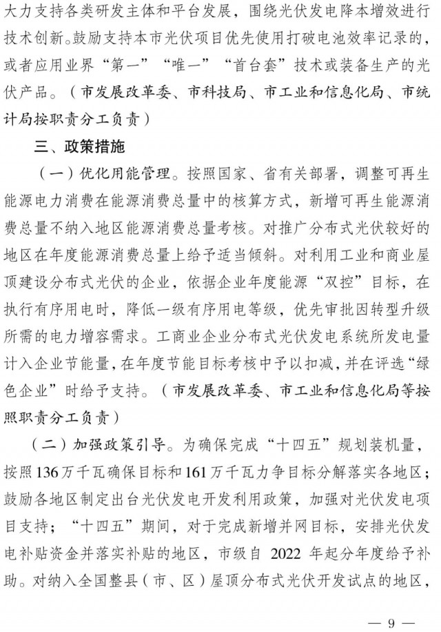 到2025年底全市確保新增光伏裝機(jī)并網(wǎng)容量136萬千瓦,力爭新增光伏裝機(jī)并網(wǎng)容量161萬千瓦,累計光伏裝機(jī)并網(wǎng)容量達(dá)到280萬千瓦以上,光伏裝機(jī)規(guī)模占本地發(fā)電機(jī)組比重超過18%。