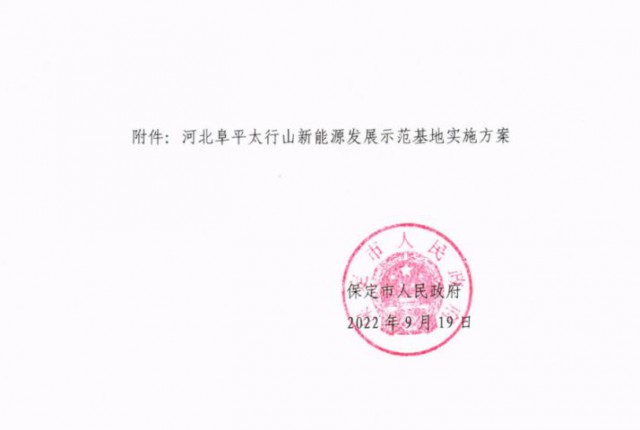 關(guān)于同意開展阜平太行山新能源發(fā)展示范基地建設(shè)的復(fù)函