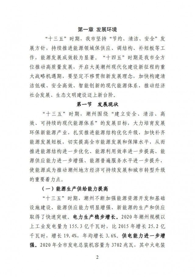 《潮州市能源發(fā)展“十四五”規(guī)劃》的通知