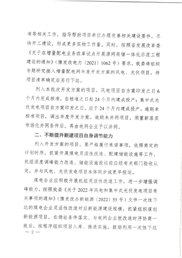 根據(jù)文件,列入本批次開發(fā)案的項(xiàng)目,風(fēng)電項(xiàng)目自方案印發(fā)之日6個(gè)月內(nèi)完成核準(zhǔn),自核準(zhǔn)之日起24個(gè)月內(nèi)建成投產(chǎn);集中式光伏發(fā)電項(xiàng)目自方案印發(fā)之日,應(yīng)于24個(gè)月內(nèi)建成投產(chǎn)。逾期未核準(zhǔn)項(xiàng)目,調(diào)出年度開發(fā)方案。逾期未并網(wǎng)項(xiàng)目,須重新落實(shí)市場化并網(wǎng)條件后,再由電網(wǎng)企業(yè)予以并網(wǎng)。