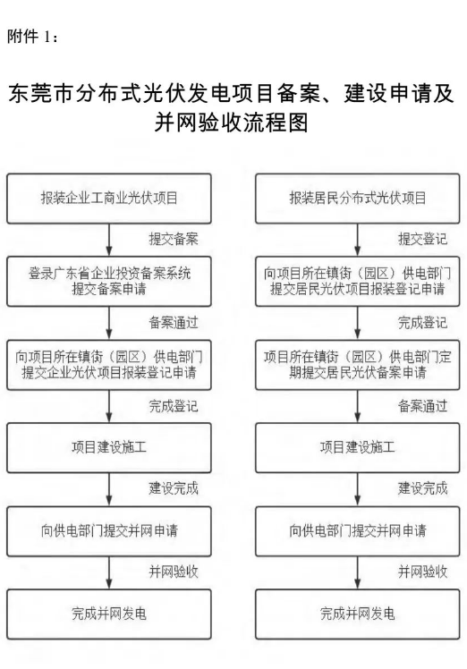 近日,東莞市發(fā)改委印發(fā)《東莞市發(fā)展和改革局分布式光伏發(fā)電項(xiàng)目建設(shè)管理辦法》的通知。在通知中提出:光伏項(xiàng)目建設(shè)采用的光伏支架要采用防腐防銹材質(zhì),材質(zhì)符合《太陽(yáng)能光伏系統(tǒng)支架通用技術(shù)要求JG/T490》,光伏支架風(fēng)力荷載與重力荷載等級(jí)符合國(guó)家鋼結(jié)構(gòu)工程施工質(zhì)量驗(yàn)收規(guī)范(GB 50205),平面屋頂項(xiàng)目光伏組件最高點(diǎn)距離鋪設(shè)平面的高度不得高于2.8米,具有樓梯間的居民樓項(xiàng)目光伏組件不高于樓梯間屋面1米(最高點(diǎn)應(yīng)不高于頂屋屋面4米),并且四周均不得圍蔽形成建筑使用空間。