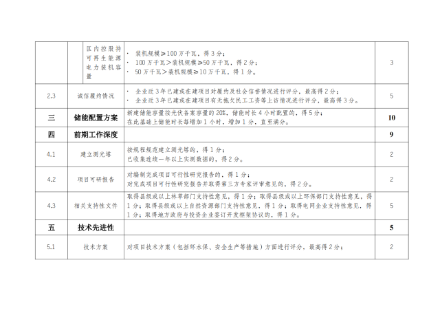 西藏自治區(qū)光伏發(fā)電項目競爭性配置評分細則規(guī)定了儲能配置方案,評分滿分為100分,其中儲能滿分為10分。新建儲能容量按光伏備案容量的20%,儲能時長4小時配置的,得5分;在此基礎(chǔ)上儲能時長每增加1小時,增加1分,直至滿分。