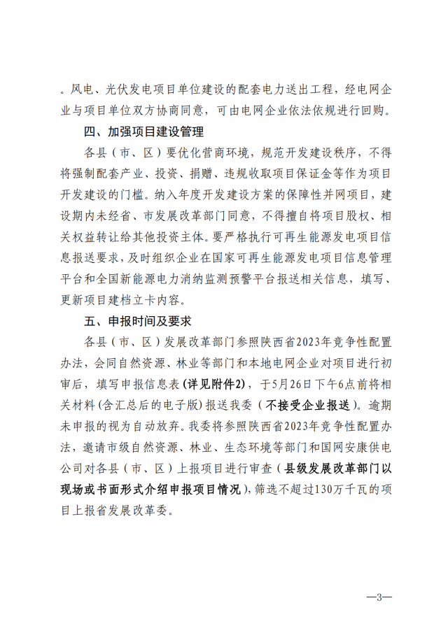 5月15日,安康市發(fā)展和改革委員會(huì)發(fā)布了《關(guān)于開(kāi)展2023年風(fēng)電光伏發(fā)電項(xiàng)目 開(kāi)發(fā)建設(shè)有關(guān)工作的通知》,其中提到了近日,陜西省發(fā)改委發(fā)布了《關(guān)于開(kāi)展陜西省2023年風(fēng)電光伏發(fā)電項(xiàng)目開(kāi)發(fā)建設(shè)有關(guān)工作》的通知。